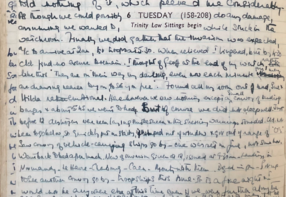 Peggy kept a diary throughout the war and, although she couldn't write specifically about the work she did, it's a wonderful record of her feelings. This is an extract from D-Day itself. Her hopes for the safety of her future husband were pinned on the invasion.