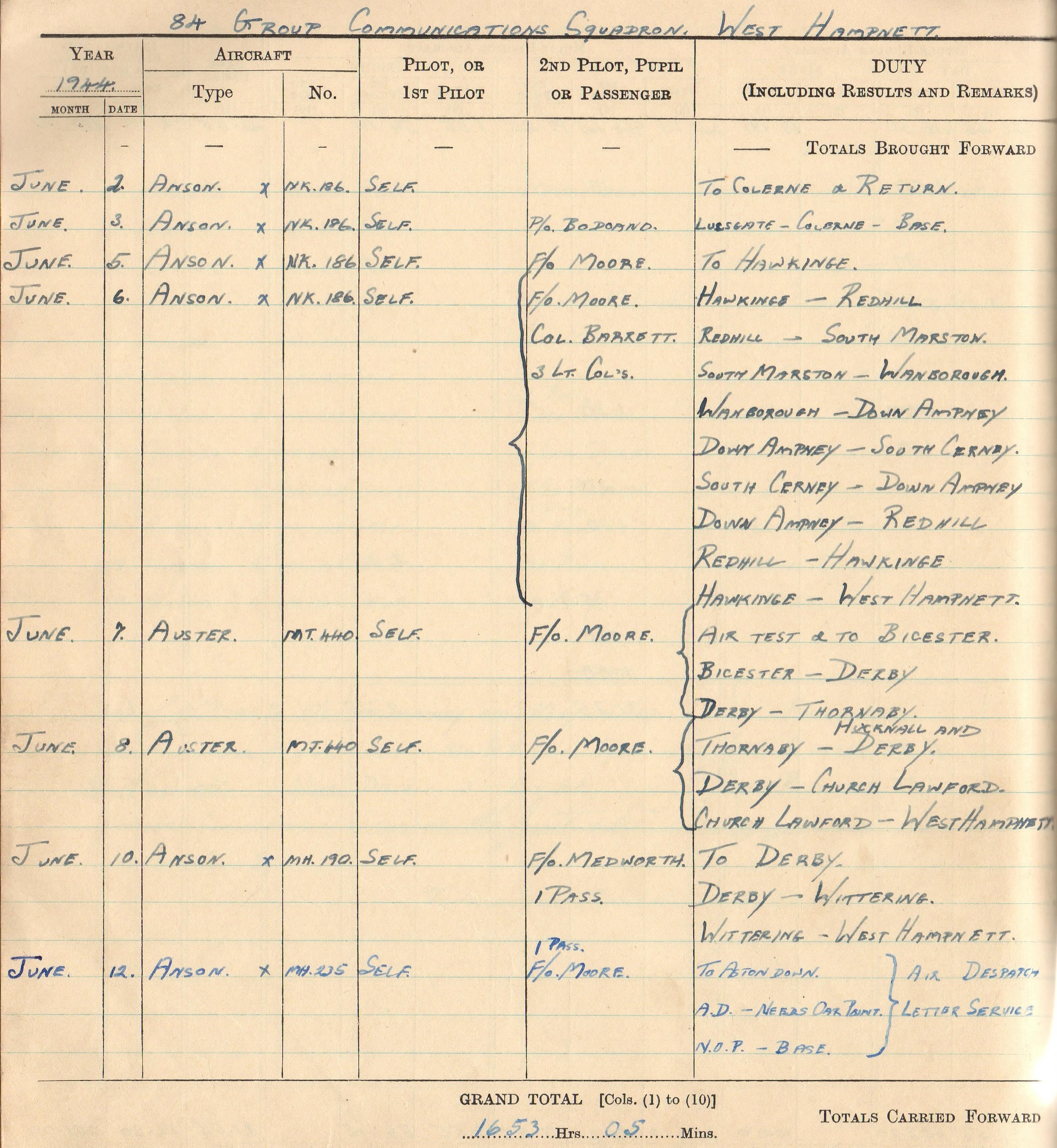 Key to the smooth-running of the operation behind the scenes, Harry's role was to fly the officers to where they needed to be. He recorded every flight he took in his logbook - including his extremely busy schedule on 6 June 1944.