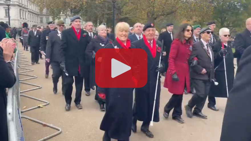 Once again, a proud group of over 80 blind veterans and guides took part in the televised march to the Cenotaph in London.