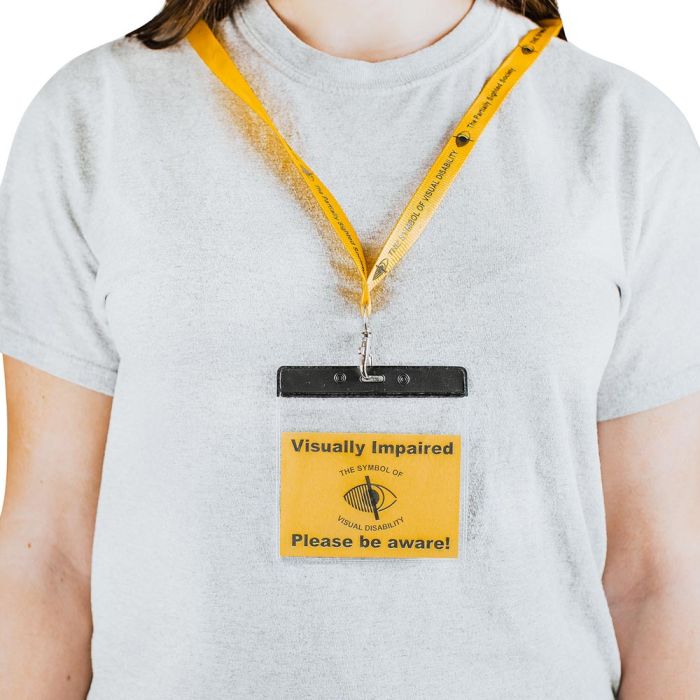 Lanyards that indicate sight loss or disability can be especially helpful in places like airports, stations or large venues where staff are trained to recognise them and offer support.