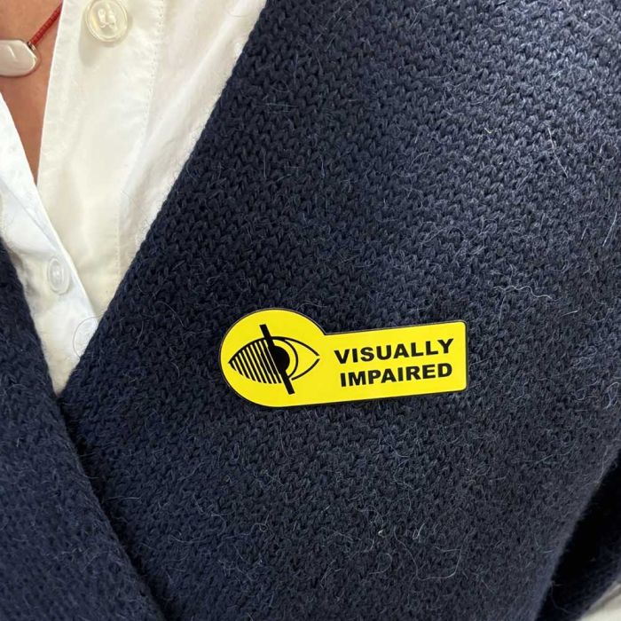 Just wearing something as simple as a badge can be enough to help make other people aware of your vision impairment, especially in a small space such as a pub or community hall.